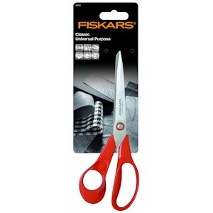 FISKARS Ciseaux universels 9850, longueur: 210 mm, ideal pour couper le tissu, lames tranchantes et poignees ergonomiques conues longtemps sans se fatiguer, vis ajustable varier l'ecartement des lames, gauchers, couleur: rouge (9850)
